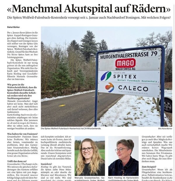 Im Interview erklären Vereinspräsidentin Karin Kissling und Geschäftsführerin Manuela Grossenbacher, wie die kleine Spitex mit einer wachsenden Klientenzahl, schwankenden Aufträgen und finanziellen Herausforderungen umgeht.