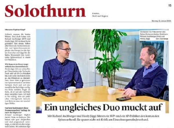 In der Ausgabe der Solothurner Zeitung vom 12. Januar 2026 äusserten sich unsere beiden Co-Präsidenten Richard Aschberger und Hardy Jäggi erstmals gemeinsam zu aktuellen Herausforderungen der ambulanten Pflege im Kanton Solothurn.